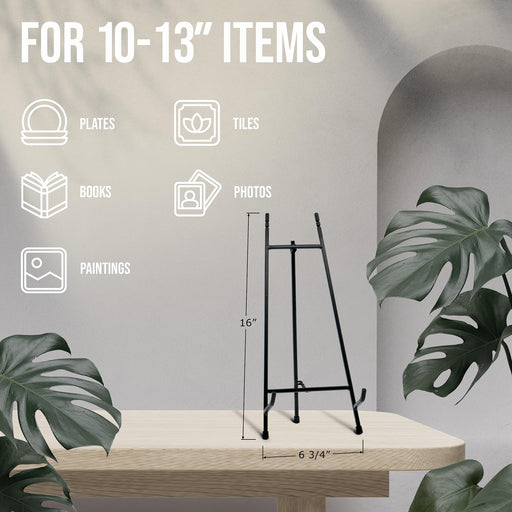 Lavishly display and securely hold decorative plates, tiles, platters, signage, artwork, pictures, books, and more with these versatile metal A-fra...
