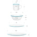 - Dimensions: Dinner Plates β 10β Dia x 1.5β H; Salad Plates β 8β Dia x 0.5β H; Cereal Bowls β 6.25β Dia x 2.5β H (holding 20 fl. oz); Mugs β 3.25β Dia x 3.25β H (holding 12 fl. oz)