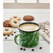 • A classic mug with a smooth, enameled white surface, black rim and green speckled design to complement vintage, shabby chic, antique, cottage, farmhouse, and country living décor.
