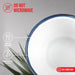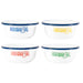 Red Co. Set of 4 White Enamelware Metal 7 oz Ice Cream Bowls, Assorted Color Prints/Navy Blue Rim
