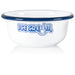 - Coated with smooth white enamel, these retro bowls feature blue rim and an “ICE CREAM” print in blue, green, red, and yellow