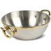 Red Co. Small Round Lazare Stainless Steel Metal Cream Soup All-Purpose Serving and Dipping Bowl in Silver Chrome with Gold Trim and 2 Handles, 4.25 Inch Diameter
