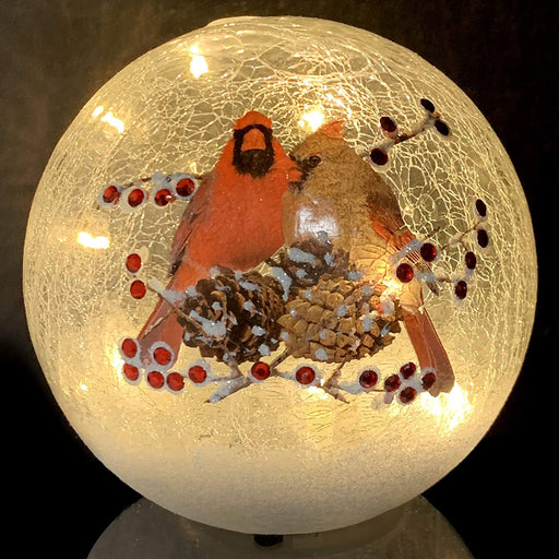 Beautiful glass globe features a pair of cardinals in a lovely nature setting β emits a soft glow when illuminated. Made of quality glass and paper...