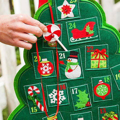 Celebrate the Advent season with this festive calendar. Shaped like a Christmas tree, this hanging door décor features 25 pockets and a movable lol...