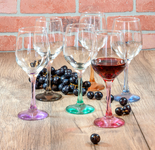 This set of four glasses are perfect for enjoying an evening cocktail or brightening up a weekend brunch with their vibrantly colored stems. The...