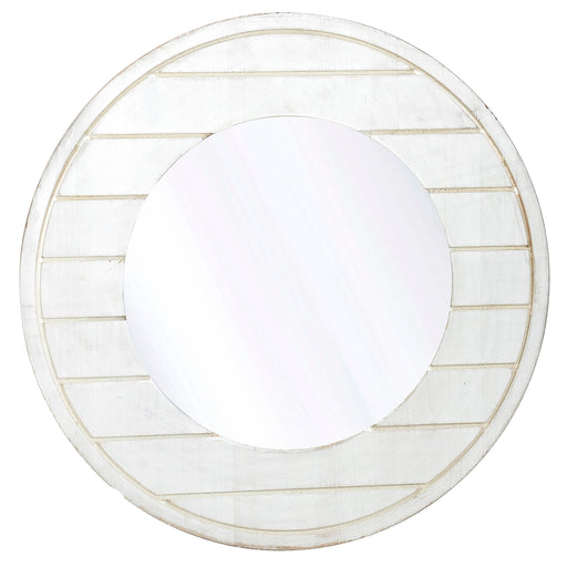 This stylish mirror with its whitewashed frame can open up a room and maximize light, making a distinctive statement in a country-style hallway, lo...