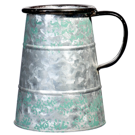 This mug is made of metal and measures 5.25" L x 3.75" W x 6" H. It is a modern rendition of the old tavern mugs used before. This item is for deco...
