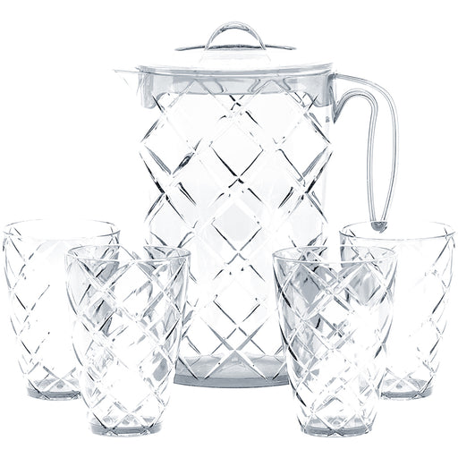 This wonderful pitcher set can be used for many types of liquid beverages such as iced tea and fruit infused juices, kool-aid for the kids and so m...