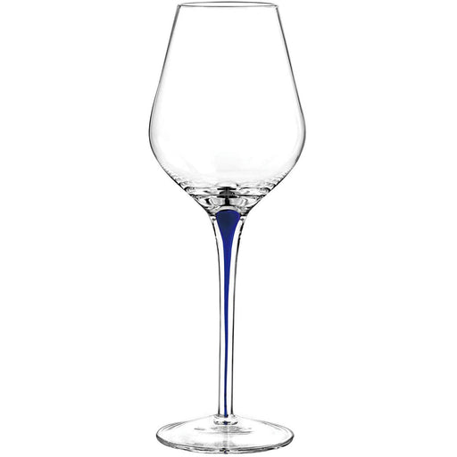 A simple shape and hint of color give these Tempest Cobalt Wine Glasses their modern feel. Featuring clear glass and sleek stems with interior blue...