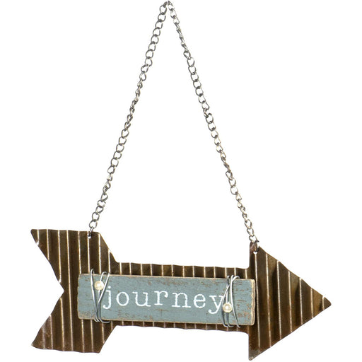 Rustic and shabby chic, this Corrugated Metal Arrow adorned with the word "Journey" painted onto a small piece of wood will create an easy, welcomi...