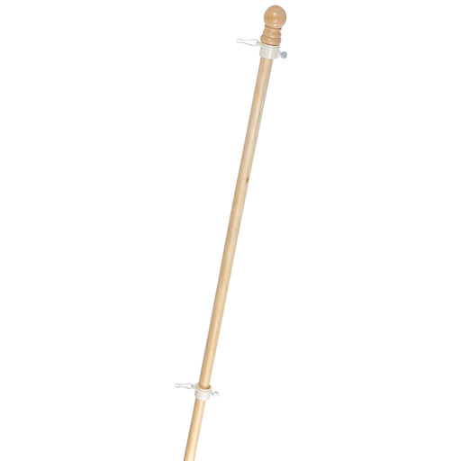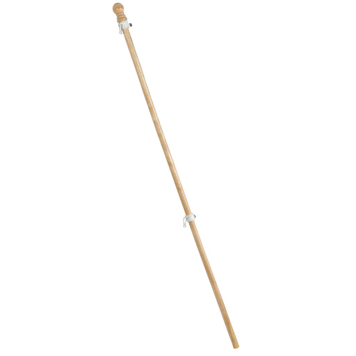 This flag pole is crafted from durable wood with a clear finish and measures 56" with a 1" diameter. You can adjust the bottom mounting ring in few...