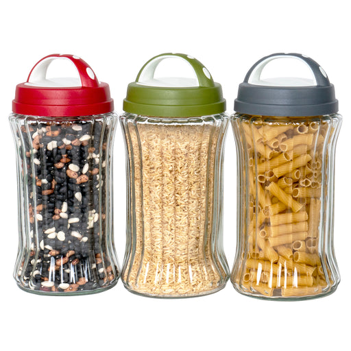 This stylish set of food storage jars set keeps your dry goods—such as flour, cereals, sugar, nuts, tea, dried beans, and your favorite snacks—safe...