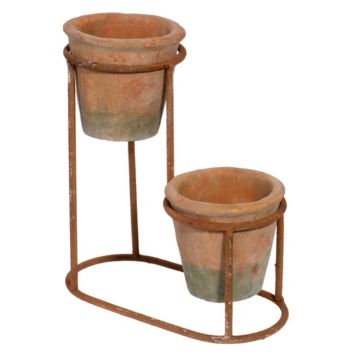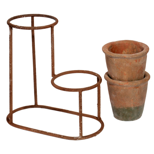 This small bench with bird and umbrella measures 13½"W x 6"D x 11½"H. Each handmade terracotta pot measures 4½" dia. x 3¾"H and comes with a hole f...