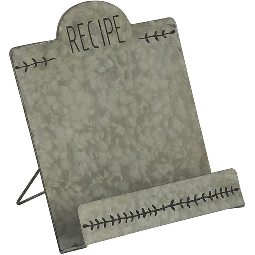 This lightweight modern farmhouse style bookstand features textured tin with white painted detailing for a perfect kitchen accent. The cookbook dis...