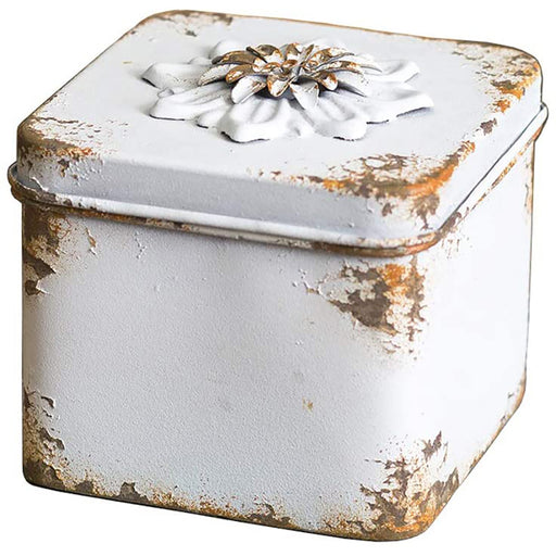 This sweet container is made of metal and measures 4½" sq. x 4"H, and features a decorative flower on the lid. This elegant container looks beautif...