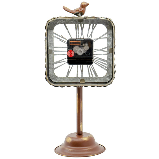 This dainty, rustic, vintage inspired table clock will make an excellent addition to your home or office decor. A unique see through pedestal desig...
