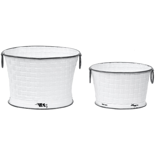Bring the charming country style and efficient storage to your home with these decorative white enameled metal storage baskets with handles. These ...