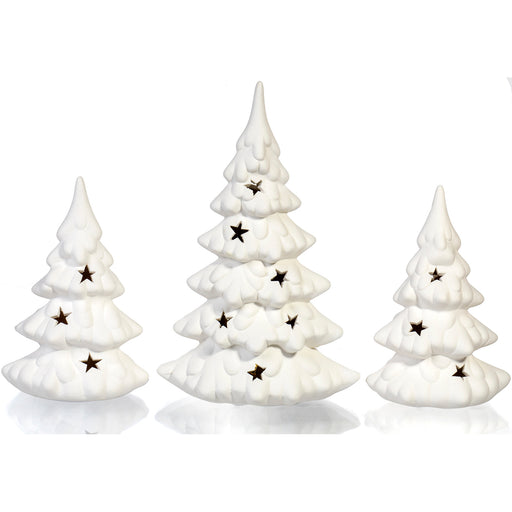 Add a touch of flair to your indoor holiday decorations with our set of three unglazed, white contemporary porcelain finish LED Trees. Our festive ...