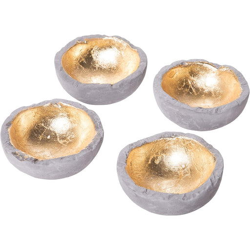 Wonderful set of tiny little decorative bowls made out of cement with a rustic glossy gold finish on the interior. This adorable little trinket ...