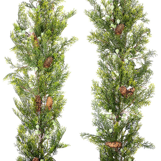 Welcome the holiday spirit this winter with this set of two 6-foot long cedar garland adorned with pine cones. Whether evoking cherished memories o...