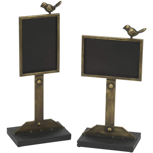 "The decorative chalkboards with perched bird details are a great option for creating a warm home environment with open storage and organization. U...