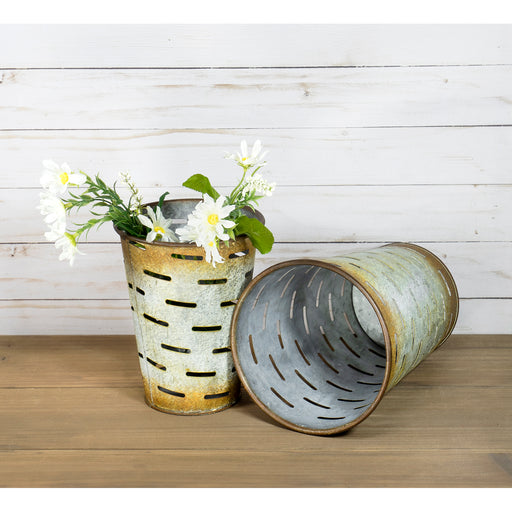 Lightweight yet durable, these buckets are made of distressed metal and feature holes for ventilation. Use them as planters to decorate any indoor ...