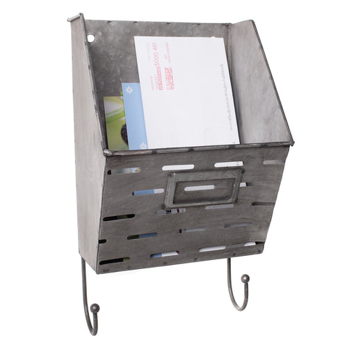 Decorative Wall Mounted pocket mail/letter box with hooks. Lightweight, yet durable. Dimensions: overall - 13"H x 7"W x 5.25" deep, hooks are 3 inc...