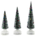 Red Co. Set of 3 (14”, 12”, 10”) Clear Glass Light-Up Decorative Tabletop Christmas Tree Holiday Figurine with LED Lights, Tinsel & Ornaments
