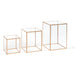 Red Co. Set of 3 (5", 7", 9") Square Clear Acrylic Event Decor Display Pedestal Stands with Golden Rims