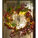 22 Inch Light-Up Christmas Wreath with Red Cranberries, Pinecones & Leaves, Battery Operated LED Lights with Timer