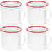 Red Co. Set of 4 Enamelware Metal Large Classic 22 Oz Round Coffee and Tea Mug with Handle, Solid White/Red Rim
