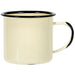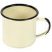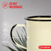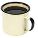 - A classic mug with a smooth, enameled surface, black rim and slight black distressing to complement vintage, shabby chic, antique, cottage, farmhouse, and country living décor