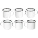 Red Co. Set of 6 Enamelware Metal Medium Classic 12 Oz Round Coffee and Tea Mug with Handle, Distressed/Black Rim