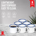 Red Co. Set of 6 Enamelware Metal Small Classic 5 Oz Round Coffee and Tea Mug, Solid White/Color Rim