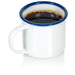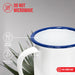 - A classic mug with a smooth, enameled white surface and color rim to complement vintage, shabby chic, antique, cottage, farmhouse, and country living décor.
