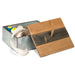 - Features a wooden lid with twine handle