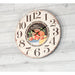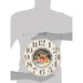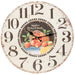 - A simple round face with a cottage farm feel, features large easily visible numbers for all 12 hours and lovely artpiece at the center