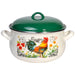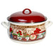 Cook and serve stocks, stews, soups, and more to your heart's and appetite's content with this lovely easy-to-clean enameled stockpot. This cream-colored vintage-style steel stockpot boasts a vibrant colorful charming exterior design inspired by classic hand-painted enamelware, with variety of lovely flowers. Sturdy handles help provide a confident grip when moving the stockpot from one kitchen area to another while the snug-fitting lid seals in heat and moisture. Enameled interior is stain resistant and easy to clean, so cooks can spend less time with after-cooking cleanup and more time with friends and family. With a solid steel construction this stockpot provides years of dependable cooking performance and is suitable for all stovetops, including electric halogen and induction.