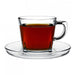 Lecce Squared Clear Glass Tea & Coffee Cups with Saucers, Set of 6-7 oz