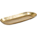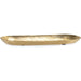 - Lightweight yet durable, this decorative metal tray features a long, narrow shape in a shiny gold finish for an authentic vintage look.