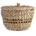 • Featuring a hand-woven design and natural texture, this nearly cylindrical lidded basket is made of natural seagrass fibers
