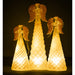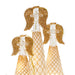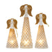 • Made of lightweight borosilicate glass, each figurine features a conical base with a raised quilted pattern in a white matte finish with gold glitter accents, adorable angels at the top (praying or carrying a star or heart), and one warm white LED light inside.