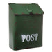 Add a bit of nostalgic charm to your outdoor decor with this mailbox. You'll be ready to tackle the bill-paying and letter-writing when this is your inbox. Dimensions: 9 3/4" L. x 4.5" W. x 13" H. Vintage inspired mailbox finished in refreshing green and slightly rusted for a true country cottage style. Features "POST" print in white letters and a small bird sitting atop the lid Made of durable metal, compact and lightweight Vintage design make it an ideal entryway or front door decor piece Dimensions: 9 3/4" L. x 4.5" W. x 13" H. Two mounting holes located at the top of the mailbox.