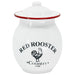 - Features a bulb-shaped design in snow-white finish with Red Rooster logo and red rim. Canister comes with a lid. Item is made of durable and solid metal. It is not for use with unwrapped food.