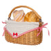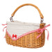 - Features a cloth liner with subtle ginham trim and red polka dot bow with a collapsible handle for easy handling and compact storage