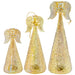 - Made of high-quality glass, each figurine features a conical base in iridescent champagne yellow with gold glitter accents, adorable angels at the top (praying or carrying a star or heart), and a 6-bead string LED lights inside.