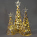 - Made of high-quality glass, each figurine features a conical design in distressed gold and silver leaf finish, crystal-clear star at the top, and one warm white LED light inside.
