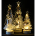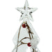 - Made of high-quality textured glass, each figurine features a transparent frosted tree with a glitter white pedestal base, crystal-clear star at the top, red berry twigs and stems, artificial snow, and an 8-bead string of LED lights inside.