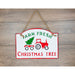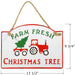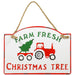 - This endearing sign features the message “Farm Fresh Christmas Tree” and a little red tractor with a green Christmas tree. It is sure to bring joy every time you walk into your home and see it. It will grab your guests’ attention and put them in a festive mood too.