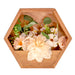 Red Co. Hexagonal Wall-Mounted Wooden Floating Shelf Floral Décor with Faux Peach/White Bouquet, 12" x 10.25" x 3"